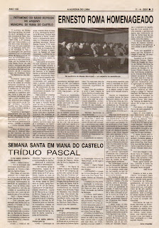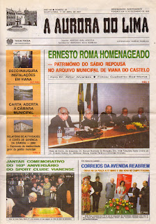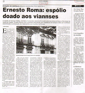 O livro de Aristides Brás Arroteia, ilustre e saudoso Director do jornal de Viana do Castelo - "A Aurora do Lima", de que reproduzimos no anterior blogue o Prefácio, foi editado quando da HOMENAGEM  PRESTADA AO DOUTOR ERNESTO ROMA pela sua cidade natal, em 31 de Março de 2001.